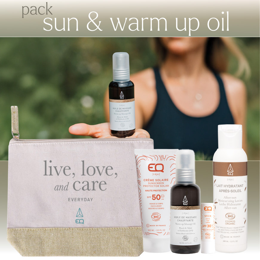 Revigorante et relaxante, l'huile de massage biologique Warm-up d'EQ aide à l'échauffement et à la récupération musculaire grâce à trois principes actifs : Camphre, Menthol et Poivre.